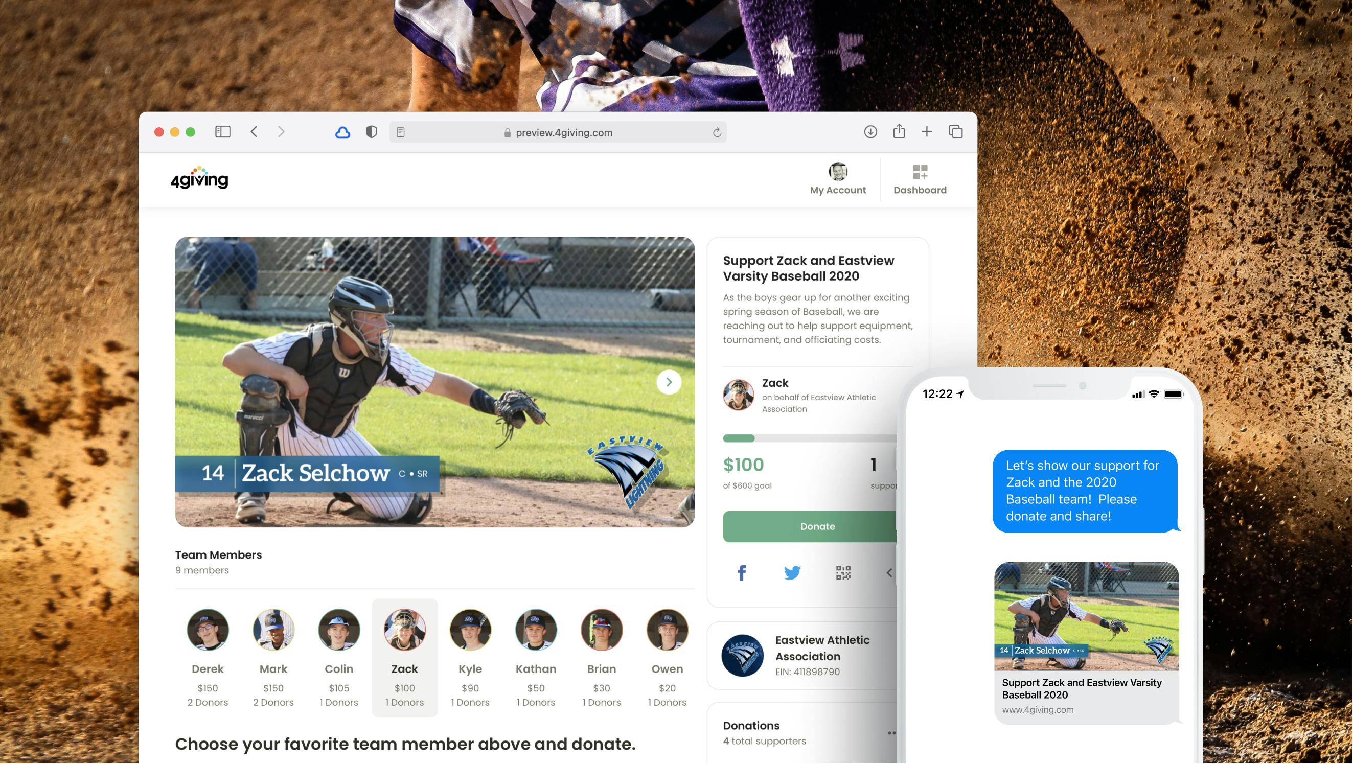 As part of the partnership, for every dollar raised by a youth sports association, team, or player, MYAS and 4giving will make a contribution to the MYAS Foundation to establish at least $500,000 each year in youth sports scholarships for future athletes.